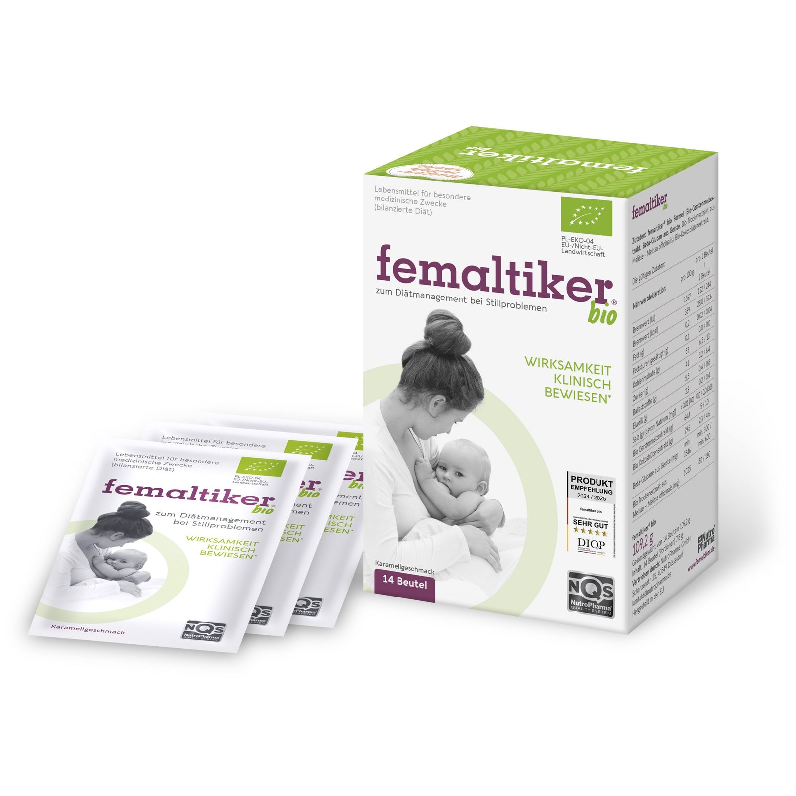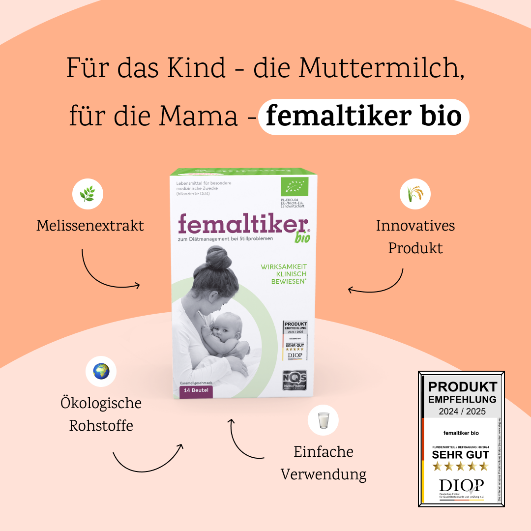 Das Produkt enthält eine spezielle Auswahl an Nährstoffen, die den spezifischen Nährstoffbedarf stillender Frauen deckt, was zur Initiation und Aufrechterhaltung des Stillens beiträgt. Das in femaltiker® bio enthaltene Gerstenmalz wird kurz gemälzt, um die wichtigsten Nährstoffe der Gerste beizubehalten. Unter diesem Mälzungsprozess wird die Bioverfügbarkeit der im Gerstenmalz enthaltenen Proteine und Kohlenhydrate erhöht. Diese spezielle Rezeptur und ihre entsprechende technologische Aufbereitung sorgen für die bessere Aufnahme der Nährstoffe. Die Verwendung eines Produkts auf Gerstenmalzbasis wird als Beispiel für gute Praxis im Diätmanagement zur Unterstützung der Milchbildung angeführt.