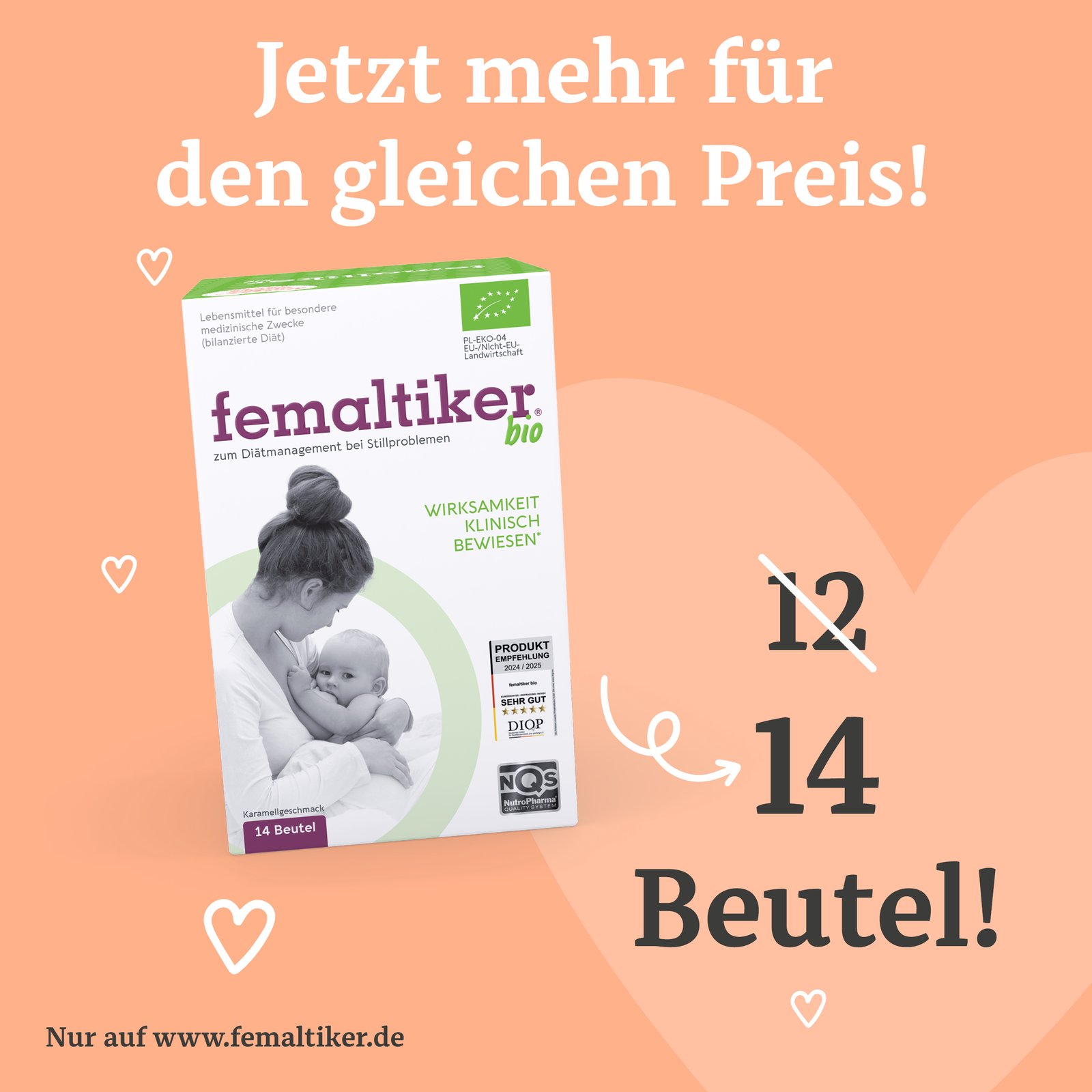 • ab sofort gibt es 2 BEUTEL MEHR pro Packung für die empfohlene Verzehrmenge für 14 Tage – zum gleichen Preis!