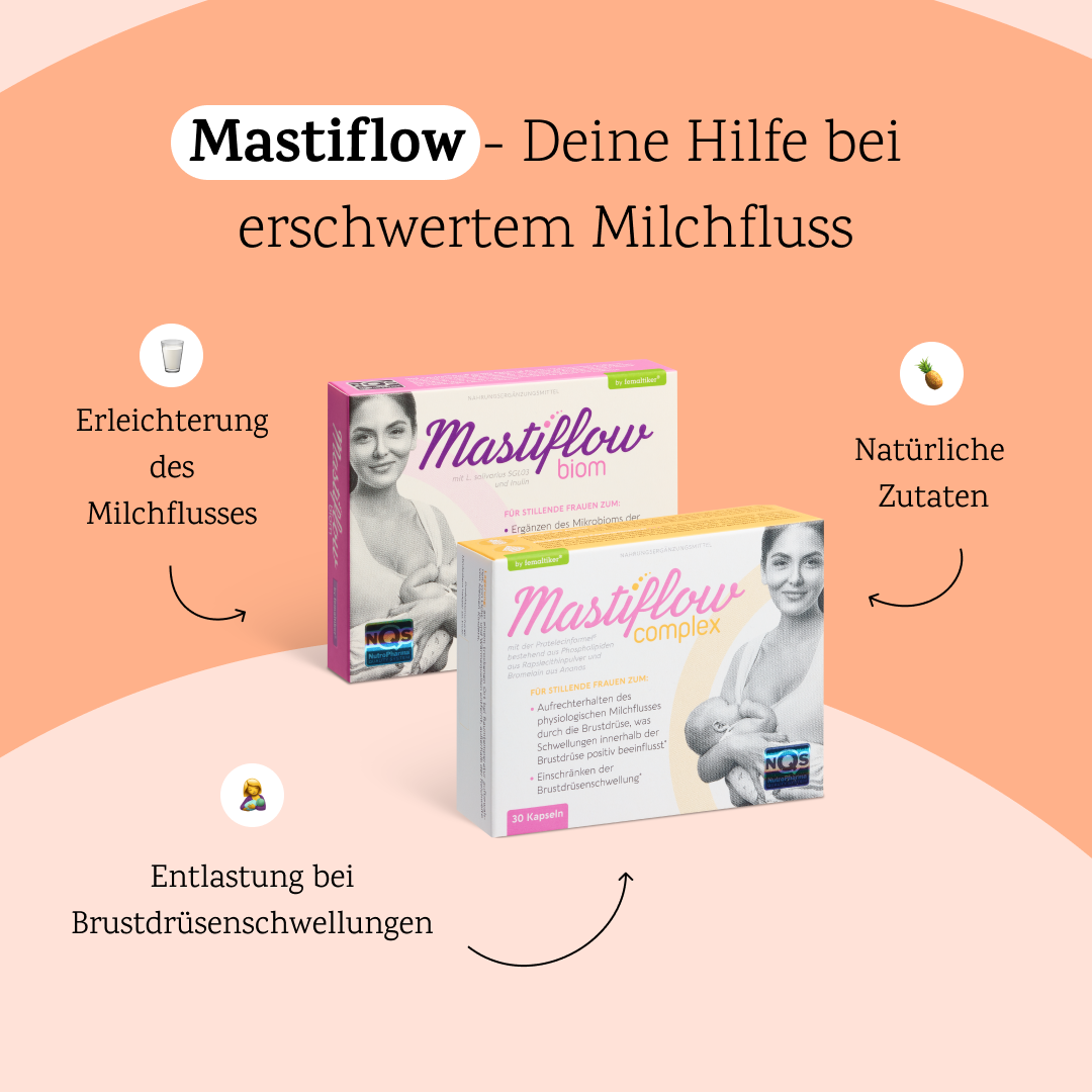 - Aufrechterhalten des physiologischen Milchfusses durch die Brustdrüse, was Schwellungen innerhalb der Brustdrüse positiv beeinflusst*