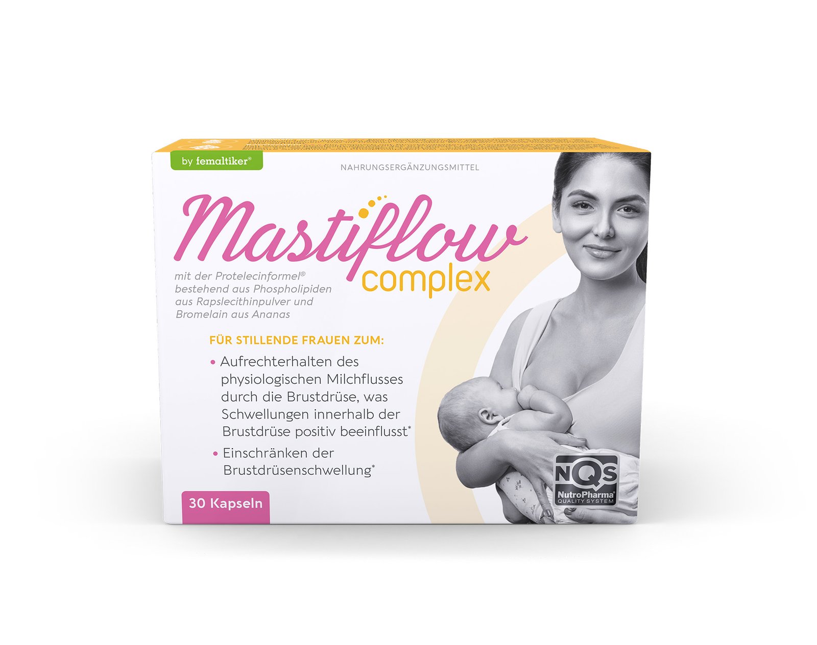 Wenn Stillen unangenehm wird: natürliches Nahrungsergänzungsmittel mit Lecithin (von der Academy of Breastfeeding Medicine empfohlen) und Bromelain – zur Unterstützung bei erschwertem Milchfluss und Spannungsgefühlen in der Brust. Optimal kombinierbar mit mastiflow biom.